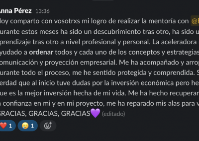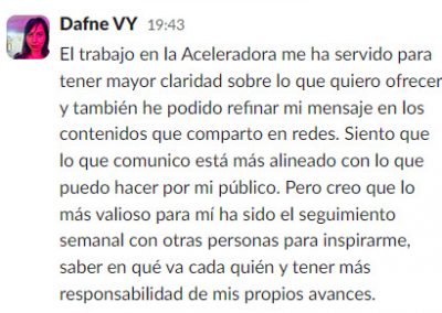 Si después de la asesoría, vemos que la Aceleradora puede ser para ti, te cuento más (si hay plazas) y cómo podrías sumarte.