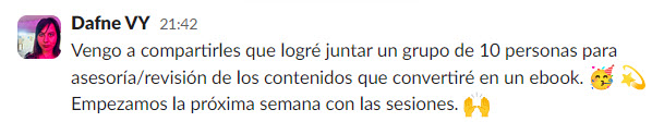 - Sesiones grupales semanales con el resto de creadores (el Ágora), para que descubras cómo han superado otros tus mismos problemas y sus estrategias más exitosas.